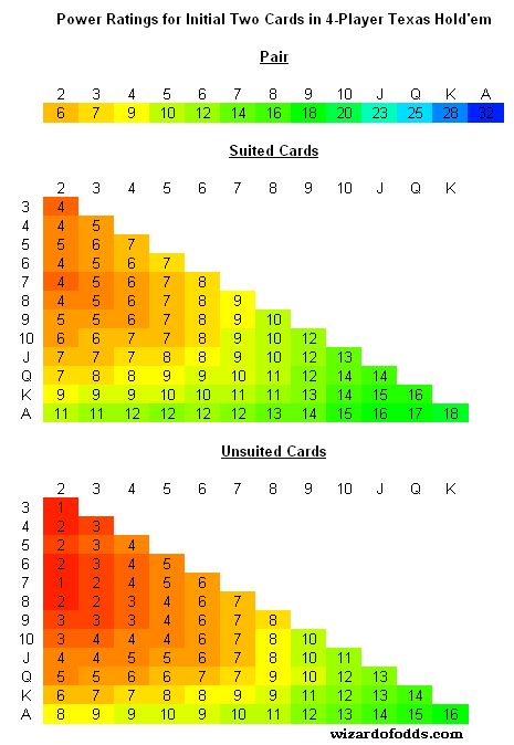 تصنيفات القوة لأربعة لاعبين في لعبة تكساس هولدم