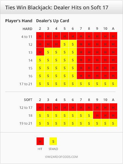تُظهر الجداول التالية الإستراتيجية وفقًا لما إذا كان الموزع يضرب أو يقف عند 17 ناعمة. هذه الجداول صحيحة لأي عدد من المجموعات.