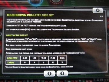 إذا كان عليك وضع رهان Touchdown Roulette وكان لديك خيار اختيار مكان اللعب، فابحث عن جدول الدفع الأكثر ليبرالية South Point 1000-200 على أعلى جائزتين.