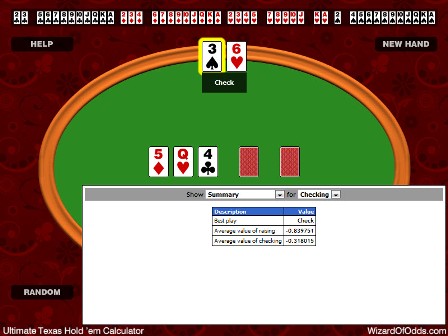 يسعدني أن أقدم لكم حاسبة تكساس هولدم® Ultimate Texas Hold 'Em . ضع أي أوراق بعد الفلوب أو النهر أو الترن، وستُظهر لك اللعبة الصحيحة والقيمة المتوقعة.