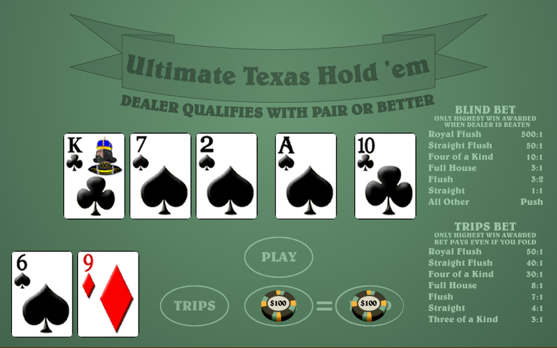 Ultimate Texas Hold'em® هي لعبة كازينو تعتمد على البوكر، حيث يمكن للاعب رفع رهانه مرة واحدة في أي وقت خلال الجولة. كلما كانت الزيادة مبكرة، زادت قيمتها. على عكس ألعاب البوكر الأخرى، تبقى الزيادة بعد الرهان المسبق سارية المفعول حتى لو لم يفتح الموزع. ابتكر هذه اللعبة روجر سنو من Shuffle Master . تُوزع Galaxy Gaming اللعبة الأساسية نفسها تحت اسم Heads Up Hold 'Em .