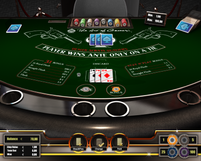 - تبدأ اللعبة بقيام اللاعب بوضع رهان Ante ورهان جانبي اختياري بقيمة 31 Bonus.