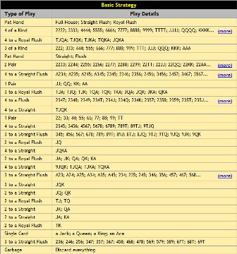 أفخر بتقديم أداة إنشاء استراتيجيات فيديو بوكر المجانية الوحيدة. أدخل أي لعبة شائعة، ثم سيُنتج جدول الدفع والآلة الحاسبة استراتيجية شبه مثالية. إليك مثال على النتيجة للعبة 9-6 Jacks or Better .