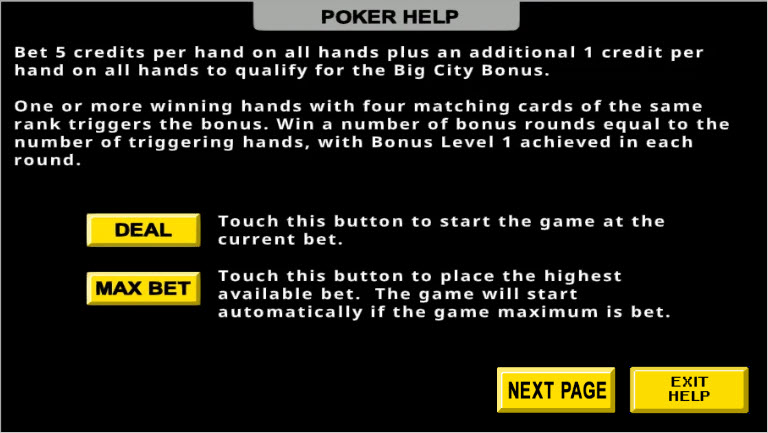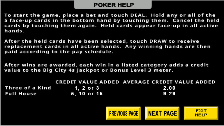 - VideoPoker.com — العب Big City 4s للمتعة. تتطلب هذه اللعبة عضوية ذهبية.