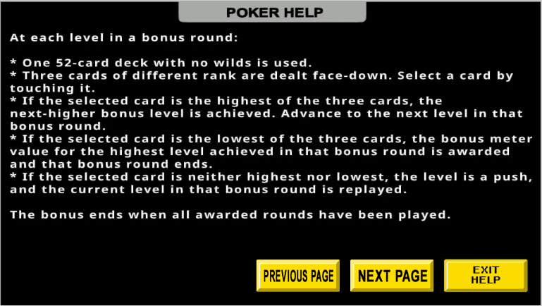 - في كل مستوى من لعبة المكافأة، يختار اللاعب من بين ثلاث بطاقات مختلفة الرتب. الهدف هو اختيار البطاقة الأعلى رتبة.