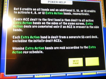 بوكر إكسترا أكشن هو نوع من بوكر الفيديو، لاحظته في مزرعة جرين فالي في ٢٣ فبراير ٢٠١٤. تشبه اللعبة بوكر الفيديو التقليدي، إلا أنه مع رهان إضافي، يحصل اللاعب على أوراق إضافية إذا حصل على آس واحد على الأقل (أو اثنين في ألعاب "الاثنين"). فيما يلي القواعد الكاملة.