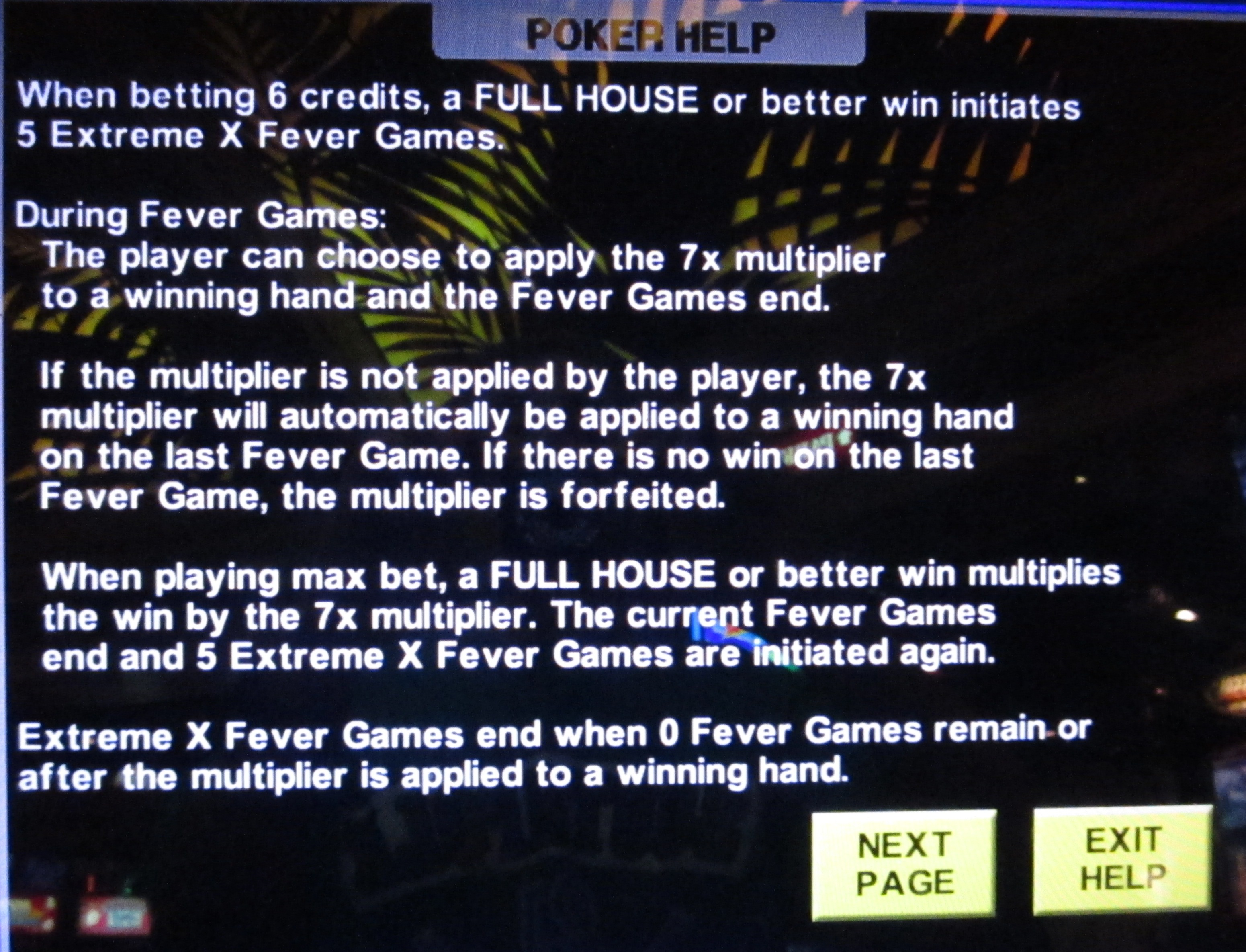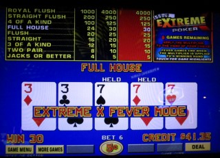 إكستريم إكس بوكر هو نوع من ألعاب الفيديو بوكر من IGT، يتميز بمكافأة تعتمد على المضاعف بعد أي فول هاوس أو أكثر في السحب. بمجرد حصول اللاعب على المكافأة، يكون أمامه خمس "ألعاب حمى" لقبول المضاعف. يُمثل هذا استراتيجية مثيرة للاهتمام، سواءً لقبوله عند فوز ضئيل أو محاولة تحقيق فوز أكبر لتطبيقه قبل انتهاء ألعاب الحمى الخمس.