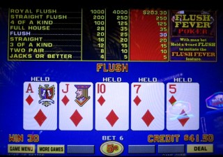 - يمكن لعب اللعبة مثل لعبة فيديو بوكر التقليدية مقابل رهان يتراوح بين عملة واحدة وخمس عملات معدنية أو يمكن للاعب تمكين ميزة Flush Fever مقابل عملة معدنية سادسة اختيارية.