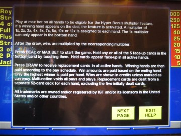 لعبة Hyper Bonus Poker — قائمة اللعبة