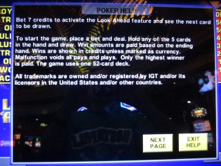 يمكن لأي مقامر محترف، أو محتال، أن يخبرك إذا كنت تعرف الورقة التالية التي سيتم توزيعها، مما يمنح اللاعب ميزة كبيرة. هذا بالضبط ما يُقال لك في لعبة Super Look Ahead Poker. بعد التوزيع، تُخبرك اللعبة بالورقة التالية التي سيتم توزيعها. للأسف، شركة IGT ليست بهذه الحماقة التي تُقدم هذه المعلومات مجانًا. فهي تُكلف عملتين إضافيتين بالإضافة إلى العملات الخمس المعتادة، مما يُساعد أيضًا على رفع جدول الأرباح قليلًا. فيما يلي القواعد الكاملة.