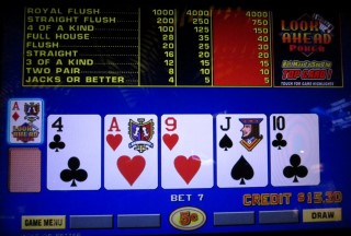 - في لعبة Super Look Ahead Poker، يتعين على اللاعب دفع ثلاث عملات معدنية إضافية لميزة Look Ahead، بدلاً من اثنين.