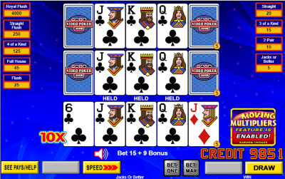شكرًا لموقع VideoPoker.com على السماح لي بنشر لقطات شاشة من لعبتهم التجريبية، ومشاركة الألعاب وجداول الدفع المتوفرة لهذه اللعبة، واحتمال المضاعف الدقيق.