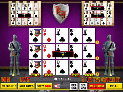 - إذا حصلت أي من هذه الأيدي على المزيد من البطاقات إلى الفلاش الملكي، فإن اليد المقابلة على الجانب الأيمن ستحصل أيضًا على نفس البطاقة.