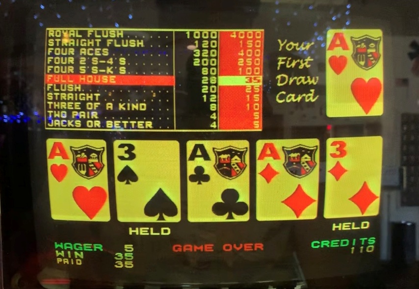 في السحب، يحصل اللاعب على الآس القلوب في الموضع الأيسر بالإضافة إلى اثنين من الآسات الأخرى، ليصبح لديه فول هاوس.