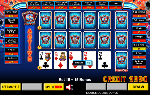 الصور مستخدمة بإذن من Video Poker.com . يلزم الحصول على عضوية ذهبية للعب Super Draw 6.
