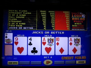 جدول الأرباح الرابع هذا مخصص للعبة Bonus Poker Deluxe ، وهو متوفر على جهاز بقيمة دولار واحد في كازينو Rampart في لاس فيغاس. تُظهر الخلية السفلية اليمنى عائدًا بنسبة 97.78%. وهو مُقترن بجدول الأرباح القياسي "6-5" للرهانات من عملة واحدة إلى خمس عملات، والذي يُحقق عائدًا بنسبة 95.36%. لذا، يكون العائد أعلى بنسبة 2.42% عند وضع الحد الأقصى للرهان بثمانية عملات، على الأقل في هذه اللعبة.