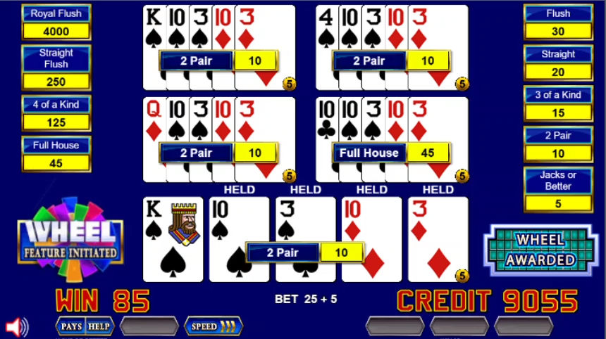 25-15-10-4-3-2 تحليل لعبة Deuces Wild ثلاثية اللعب