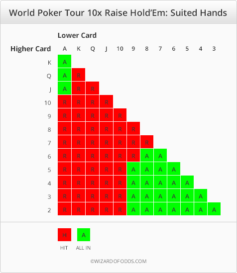 يوضح الجدول التالي القيمة المتوقعة عند زيادة الرهان والمراهنة بكل شيء في جميع الأيدي الممكنة. كما يُشار إلى احتمالية مساهمة اليد المكونة من بطاقتين في إجمالي العائد.