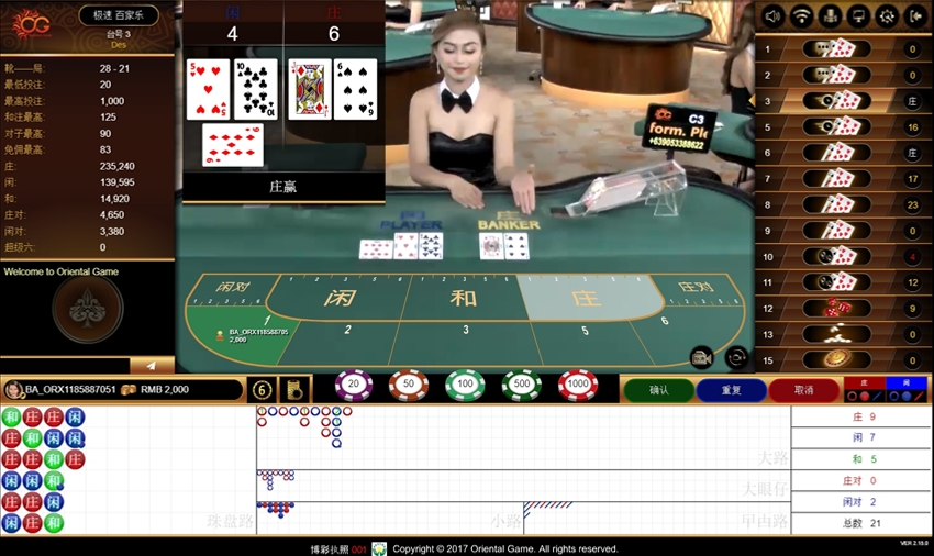 تقدم Oriental Game لعبة باكارات قياسية بخمسة رهانات قياسية.