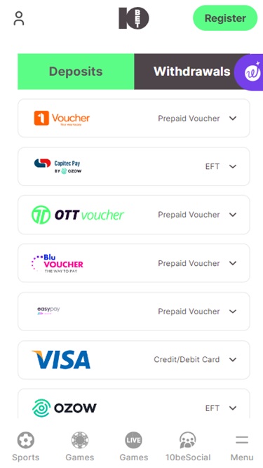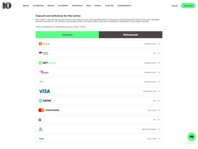 خيارات الخدمات المصرفية في 10Bet Casino Africa