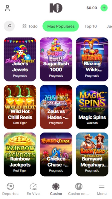 إذا قررت الانضمام واللعب في كازينو 10Bet المكسيكي، فستتمكن من الاختيار من بين نخبة من عمالقة هذا المجال. من أشهرها: Ainsworth، وInspired، وNoLimit، و Spinomenal ، وWazdan، وWizard.