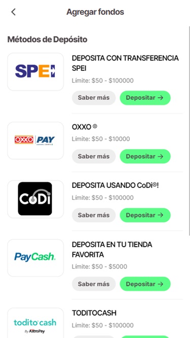 إذا قررت اللعب في كازينو 10Bet المكسيكي، يمكنك إيداع أموالك عبر عدة طرق شائعة، مثل ماستركارد، وفيزا، وأوكسو، وBBVA، وتوديتو كاش ، وغيرها الكثير. ونظرًا لتزايد اعتماد الكازينوهات على إيداع العملات المشفرة ضمن خيارات الدفع، قرر كازينو 10Bet المكسيكي مواكبة هذا التوجه.