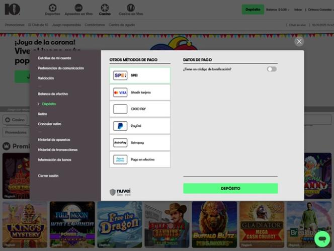 خيارات الخدمات المصرفية في 10Bet Casino Mexico