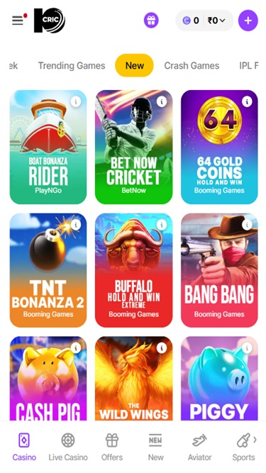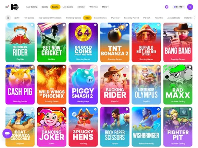 كازينو 10cric مدعوم بواسطة Microgaming, Net Entertainment, Playtech, 1x2gaming, Big Time Gaming, Evolution Gaming, Ezugi, Play'n GO, Quickspin, Relax Gaming, Yggdrasil, GameArt, Betgames, Nolimit City, Red Tiger Gaming, Booongo, Skywind, Triple Edge Studios, BGAMING, Northern Lights Gaming, Evoplay, Stormcraft Studios, OneTouch, Pocket Games Soft, Bulletproof Games, Gluck Games, Gameburger Studios, Pulse 8 Studios, Neon Valley Studios, Golden Rock Studios, Spearhead Studios, Super Spade Games, SpinPlay Games, Buck Stakes Entertainment, Games Global, Ash Gaming, Blueprint Gaming, EveryMatrix, Gaming Realms, Iron Dog Studio, Old Skool Studios, Foxium, Just For The Win, Reflex Gaming, PearFiction Studios, Slingshot Studios, Fortune Factory Studios, 4ThePlayer, Gamevy, Crazy Tooth Studio, High 5 Games, ReelPlay, SlotVision, Alchemy Gaming, Rarestone Gaming, Qtech Games, Snowborn Games, Boomerang Studios, Hacksaw Gaming, Max Win Gaming, Gold Coin Studios, Bang Bang Games, Peter And Sons, Aurum Signature Studios, Onlyplay, Armadillo Studios, Bombay Live, Kiron, Winfinity, 3 Oaks Gaming, Spribe, Circular Arrow, Gaming Corps and Neko Games ، ويُقدّم عبر منصة ويب جذابة تُحمّل من خلال متصفح الإنترنت. الموقع سهل التصفح، وستجد علامات تبويب مختلفة في المقدمة تُرشدك إلى المكان الذي تُريده. كما يدعم اللعب عبر الهاتف المحمول بالكامل، ما يُتيح لك اللعب على هاتفك الذكي أو جهازك اللوحي.