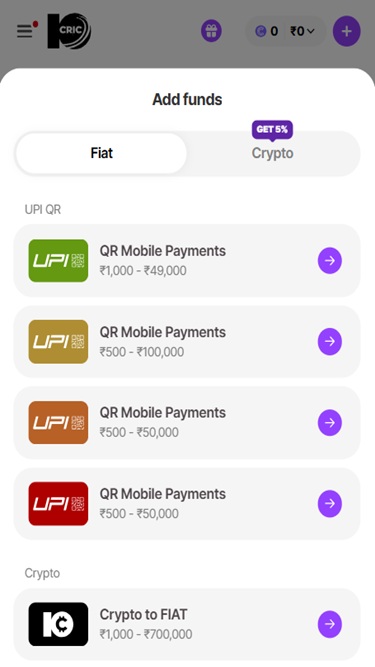 خيارات الخدمات المصرفية في 10CRIC Casino