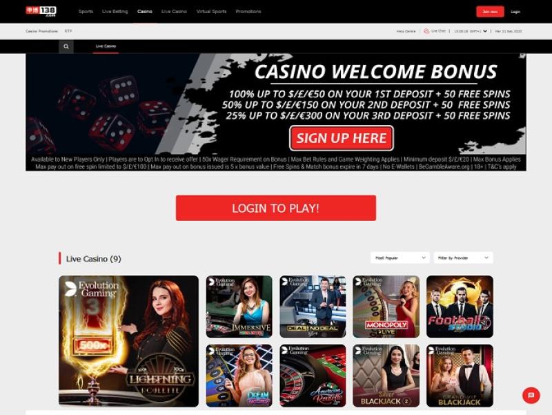 138.com هو موقع مراهنات إلكتروني، كان يُعرف سابقًا باسم 138SunGame، ولكنه غيّر اسمه عام 2013 لتبسيط علامته التجارية. يركز الكازينو على سوق المراهنات الآسيوي، ولكنه يقع في أوروبا، وبالتالي يخدم جمهورًا كبيرًا جدًا. خلال سنواته على الإنترنت، حظي 138.com بإشادة عملائه بفضل إدارته الممتازة، وسرعة صرفه، ومكتبة ألعابه المتميزة.