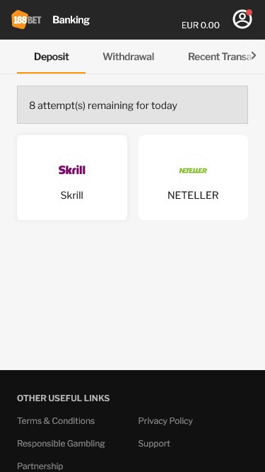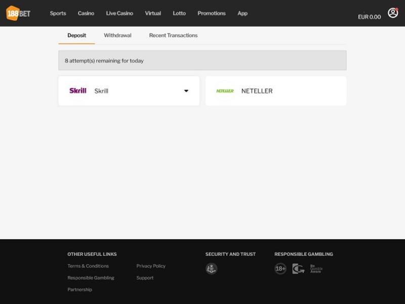 يبدو أن 188Bet لا تقدم نقاطًا مجانية للاعبيها.