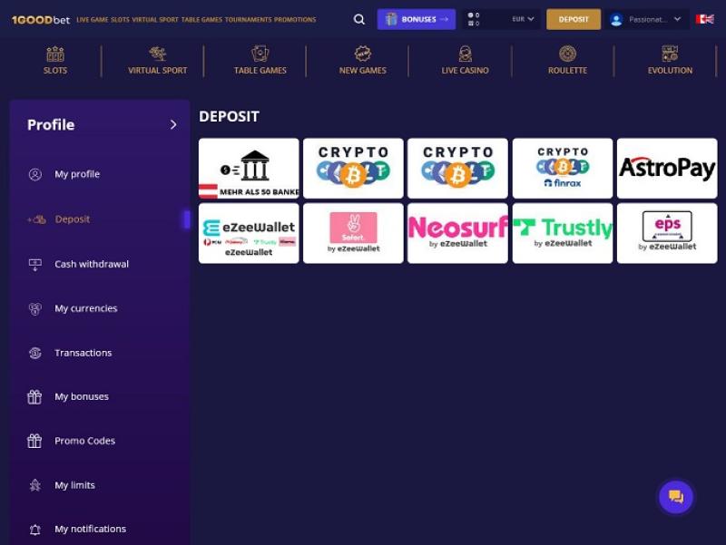 خيارات الخدمات المصرفية في 1GOODbet Casino