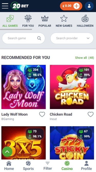 كازينو 20Bet مدعوم بواسطة Microgaming, Net Entertainment, Playtech, BetSoft, 1x2gaming, Amatic Industries, Big Time Gaming, ELK Studios, Evolution Gaming, EYECON, Ezugi, Genesis Gaming, Novomatic, Oryx, Play'n GO, playson, Quickspin, Relax Gaming, Thunderkick, Yggdrasil, Endorphina, Wazdan, GameArt, Booming Games, Pragmatic Play, Nolimit City, Red Tiger Gaming, Booongo, LuckyStreak, Spinomenal, Felix Gaming, Red Rake Gaming, Skillzzgaming, Fugaso, Belatra Games, Fantasma Games, FunFair, Platipus Gaming, Skywind, Spinmatic, Spadegaming, Triple Edge Studios, BGAMING, Northern Lights Gaming, Evoplay, Stormcraft Studios, Switch Studios, OneTouch, Pocket Games Soft, All41 Studios, Gluck Games, Mascot Gaming, TVBet, NetGame Entertainment, Gameburger Studios, Slot Factory, Neon Valley Studios, Golden Rock Studios, Spearhead Studios, Swintt, TrueLab Games, SpinPlay Games, Mancala Gaming, Expanse Studios, 7Mojos, SmartSoft Gaming, KA Gaming, Real Dealer Studios, GONG Gaming, On Air Entertainment, Buck Stakes Entertainment, Caleta Gaming, Games Global, Amusnet Interactive, Ainsworth, Ash Gaming, CT Interactive, EveryMatrix, Greentube, Leander Games, Push Gaming, Tom Horn Gaming, Gamomat, Noble Gaming, BF Games, Bally Wulff, Old Skool Studios, Foxium, Just For The Win, Wild Streak Gaming, Slingshot Studios, Fortune Factory Studios, RubyPlay, AvatarUX, Gamevy, Crazy Tooth Studio, High 5 Games, ReelPlay, Alchemy Gaming, Rarestone Gaming, Indi Slots, Black Pudding Games, Snowborn Games, Boomerang Studios, Hacksaw Gaming, Max Win Gaming, Gold Coin Studios, Gamzix, Triple Cherry, Peter And Sons, Absolute Live Gaming, Aurum Signature Studios, Onlyplay, Gamebeat, Area Vegas, RAW iGaming, Bombay Live, Leap Gaming, TaDa Gaming, Winfinity, 3 Oaks Gaming, Amigo Gaming, Wishbone Games, Spribe, Circular Arrow, 1spin4win, Gaming Corps, BetSolutions, Nailed It! Games, Neko Games, Reel Kingdom, Oros Gaming, JVL, Indigo Magic, Popiplay, Live88, ICONIC21, Galaxsys, Penguin King and Octoplay ، ويتميز بواجهة ويب يمكنك الوصول إليها باستخدام متصفح الإنترنت. يتميز الموقع بتصميمه الأنيق وسهولة التنقل فيه، ويضم علامات تبويب مختلفة لمواقع المراهنات الرياضية، والكازينو، وكازينو الموزع المباشر. كما يدعم الموقع الهواتف المحمولة، مما يتيح لك اللعب على هاتفك أو جهازك اللوحي.المقامرة المسؤولة ودعم العملاء والأمان