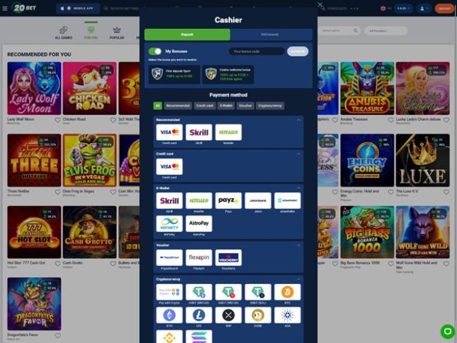 خيارات الخدمات المصرفية في 20Bet Casino