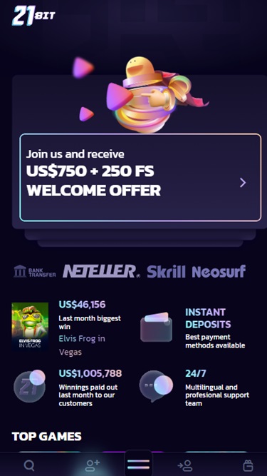 بالإضافة إلى برنامج الولاء، ستستمتع أيضًا بمكافأة على الإيداع الأول والثاني والثالث والرابع. كما يقدم كازينو 21bit للاعبيه مكافأة ترحيبية، وإعادة شحن رصيدهم في عطلة نهاية الأسبوع. مع الأخذ في الاعتبار كل هذه العوامل، يمكننا القول بثقة أن هناك الكثير مما نتطلع إليه عند اللعب في كازينو 21bit.
