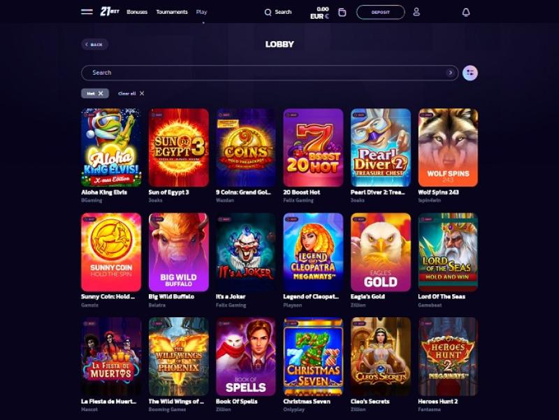 لحسن الحظ، يضم كازينو 21bit مجموعة رائعة من مقدمي الخدمات. إذا كنت من محبي ألعاب القمار على الإنترنت، فستكون سعيدًا جدًا بقضاء وقتك هنا، وهذا ما نضمنه لك. من بين أشهرها Gamzix، وBooming Games، وRed Tiger Gaming، وFelix Gaming، و Bgaming ، وغيرها الكثير.