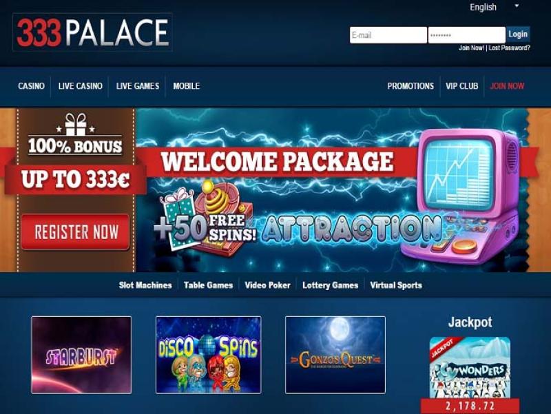 كازينو 333 بالاس هو موقع مراهنات إلكتروني تأسس عام 2013، وتملكه وتديره شركة هيرميس جيتواي المحدودة. يقدم الكازينو للاعبيه مكتبة ألعاب ضخمة، ولكنه يواجه بعض الصعوبات بسبب بطء السداد ونقص الجوائز الكبرى التراكمية.معلومات الكازينو