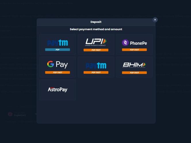 أما بالنسبة لخيارات الدفع ، فليس هناك الكثير للاختيار من بينها، وهو أمر نرغب بشدة في تغييره مستقبلًا. لا يتوفر خيار الدفع بالعملات المشفرة. يمكن للاعبين اختيار Astropay، أو GooglePay، أو IMPS، أو PayTM، أو UPI كطرق دفع رئيسية.