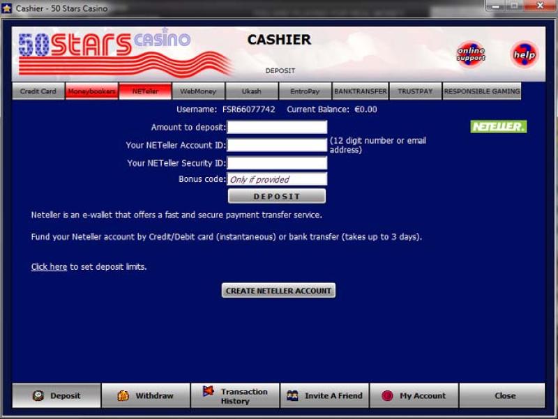 خيارات الخدمات المصرفية في 50 Stars Casino