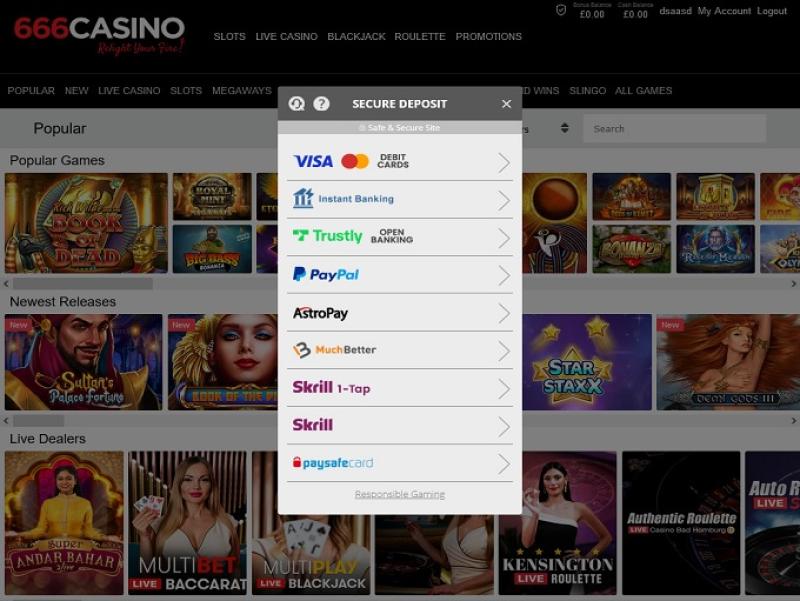 النظام المصرفي في 666 جيد، مع أن عمليات الدفع تستغرق بضعة أيام، وهي مدة طويلة جدًا بالنسبة لكازينوهات الإنترنت هذه الأيام. يقوم المشغل بتحويل الأموال باستخدام بطاقات الائتمان والمحافظ الإلكترونية. هناك مهلة انتظار مدتها 48 ساعة لسحب الأرباح، بينما تستغرق الطرق المختلفة وقتًا أطول قليلاً في المعالجة.