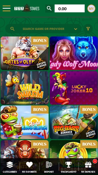 هذا موقع ألعاب جذاب مع منصة كازينو سهلة الاستخدام وسهلة التنقل حتى يتمكن اللاعبون من العثور بسهولة على الألعاب التي يبحثون عنها أو تصفح الألعاب الجديدة. يقدم 777Stakes ألعاب الطاولة، وفيديو بوكر، والفتحات الكلاسيكية، وفيديو الفتحات ، وJackpot Slots، وألعاب الأركيد، وألعاب الموزع المباشر.