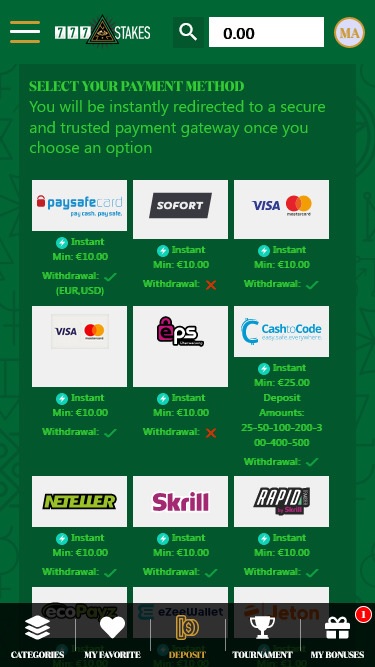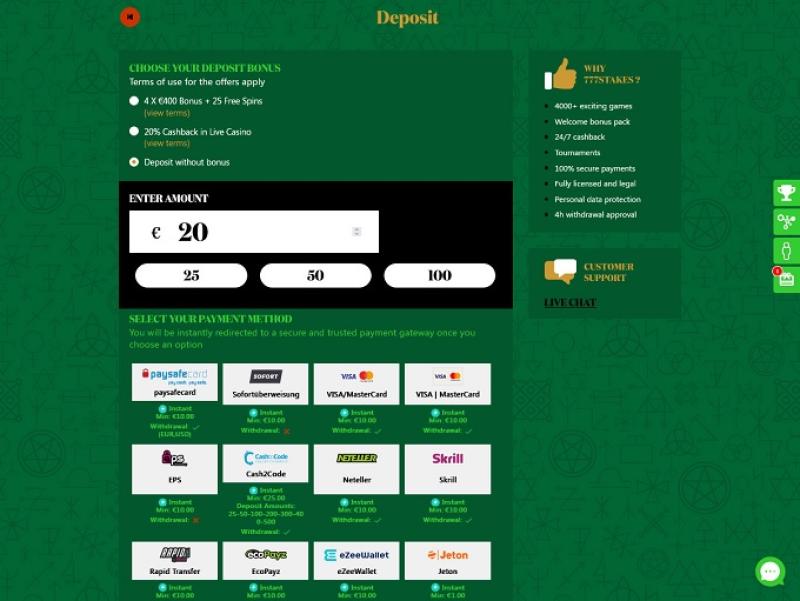خيارات الخدمات المصرفية في 777Stakes Casino
