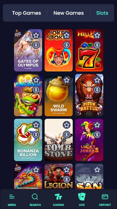 اسم العلامة التجارية يُظهر كل شيء! 77Spins لديها مجموعة رائعة من ألعاب السلوتس. إليك جزء صغير من الألعاب المتوفرة: Gates of Olympus، Hell Hot 100، Ninja، Santa's Gift، Royal Coins 2: Hold and Win، The Dog Hou$e، Book Of Fallen، Wild Pride، Gamblelicious Hold and Win، Royal Wins، Let it Spin، Buffalo Hold and Win، Show Me The Mummy، Paris Nights، Aqua Lord، Temple Tumble، Fire 88، Valley of Pharaohs، Cheeky Monkeys، Octobeer Fortunes، Wolf Gold، The Wild Wings of Phoenix، John Hunter & the Tomb of the Scarab Queen، Lucky Lightning، Books & Bulls، Bonanza، Workshop Wonders Spin Crease، Kluster Krystals، Book Of Demi Gods III، Journey To The West، Fruit Warp، Book of Toro، Million Christmas، Jacks or Better، Book of Souls II: El Dorado، Pyramid King، Adventure Palace Online Slot والمزيد.