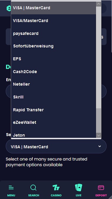 يدعم أمين الصندوق خيارات دفع شائعة متنوعة، ولكن لا يتوفر الدفع بالعملات المشفرة في هذا الموقع. يمكن للاعبين استخدام طرق الدفع التقليدية، مثل المحافظ الإلكترونية وبطاقات الدفع وأنظمة الدفع الإلكترونية الأخرى.