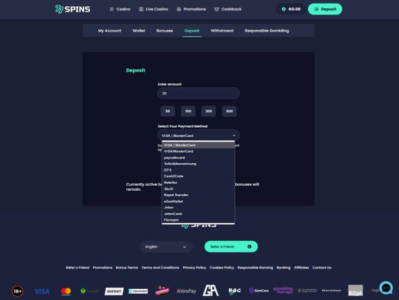 لم يحصل 77Spins Casino على تأييد من Wizard of Odds.
