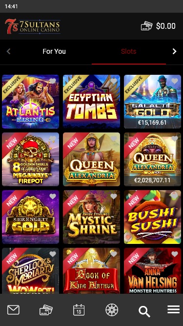 سيجد عشاق ألعاب السلوتس وفرةً منها في كازينو 7 سلطانز، حيث توفر مايكروغيمينغ المئات من هذه الألعاب في كازينوهاتها. سيجد اللاعبون ألعابًا جديدة مثل Jurassic Park وTerminator 2: Judgment Day، إلى جانب Thunderstruck II وImmortal Romance. كما تتوفر تشكيلة واسعة من ألعاب السلوتس الكلاسيكية بثلاث بكرات، والتي توفر تجربة لعب أبسط وأكثر متعة.