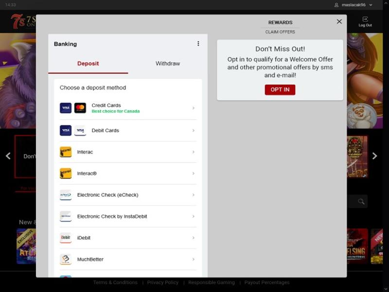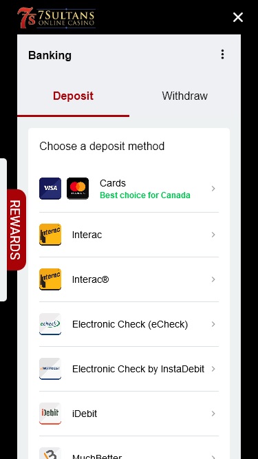 خيارات الخدمات المصرفية في 7 Sultans Casino