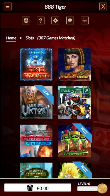 كازينو 888 تايجر مدعوم من Rival, Vivo Gaming and Dragon Gaming ، وتُقدم الألعاب عبر منصة ويب تُحمّل عبر متصفحك. لا يتطلب تنزيل أي برامج، وهذا أمر جيد، ويمكنك اللعب على هاتفك الذكي أو جهازك اللوحي أيضًا إذا رغبت في ذلك.