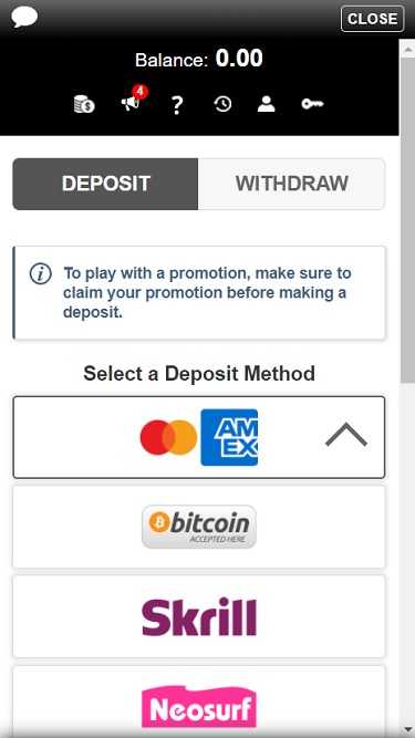 الخدمات المصرفية نقطة ضعف، لكنها تُعدّ، إلى حد ما، نقطة ضعف الكازينو الذي يلبي احتياجات السوق الأمريكية المحدودة أكثر من أي شيء آخر. يقبل الموقع الإيداع والسحب عبر بطاقات الائتمان والمحافظ الإلكترونية والبيتكوين، ولكن قد تستغرق أوقات السحب ما بين يومين وسبعة أيام عمل، حسب طريقة السحب. قد يبدو هذا بطيئًا جدًا بالنسبة لي، لكن الموقع يُجري عمليات الدفع بانتظام وبشكل جيد.