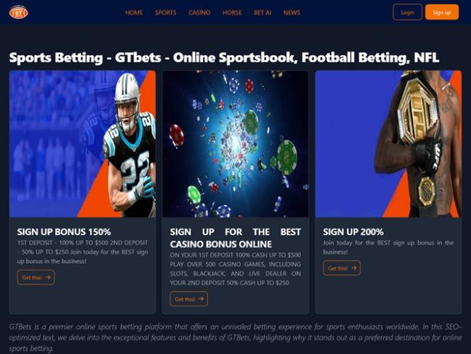 GTbets هو موقع مراهنات إلكتروني يُقدم خدمات المراهنة للاعبين في سوق المراهنات الأمريكي. يُدير الموقع مكتب مراهنات رياضية شهيرًا، ويضم أيضًا كازينو إلكترونيًا يُقدم مجموعة مُختارة من ألعاب ماكينات القمار والبلاك جاك والروليت. منذ إطلاقه، اكتسب GTbets شعبية واسعة بين اللاعبين بفضل عروضه الترويجية العادلة ومدفوعاته الموثوقة.معلومات الكازينو